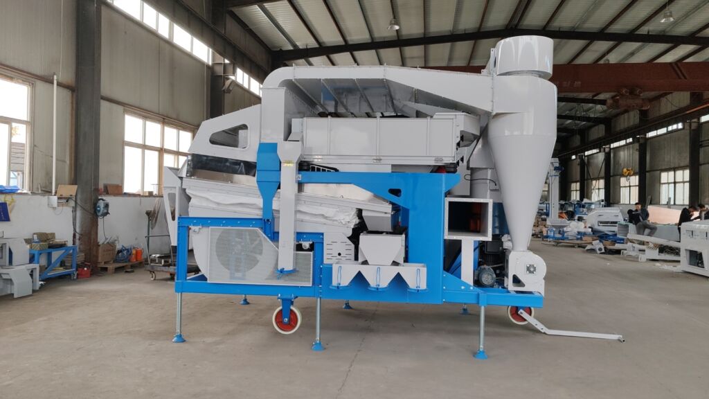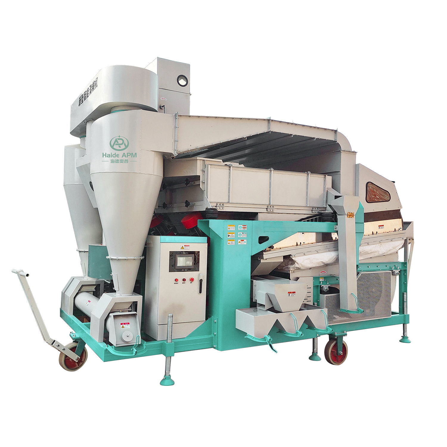 STRUCTURE: This seed cleaner with gravity table includes PLC, front and rear wind selection, double cyclone dusting system, wide two layers vibration screens, large gravity table, Electric control cabinet, and frequency converter.